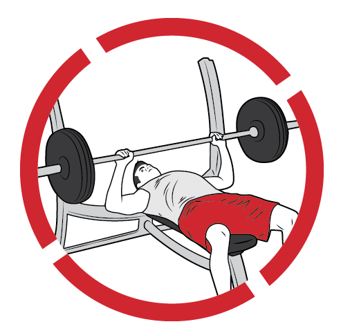 B) Remove the bar from the uprights and position it above your chest, then lower it halfway to your chest. Straighten your elbows to press the weight back up until your arms are straight, but not locked.