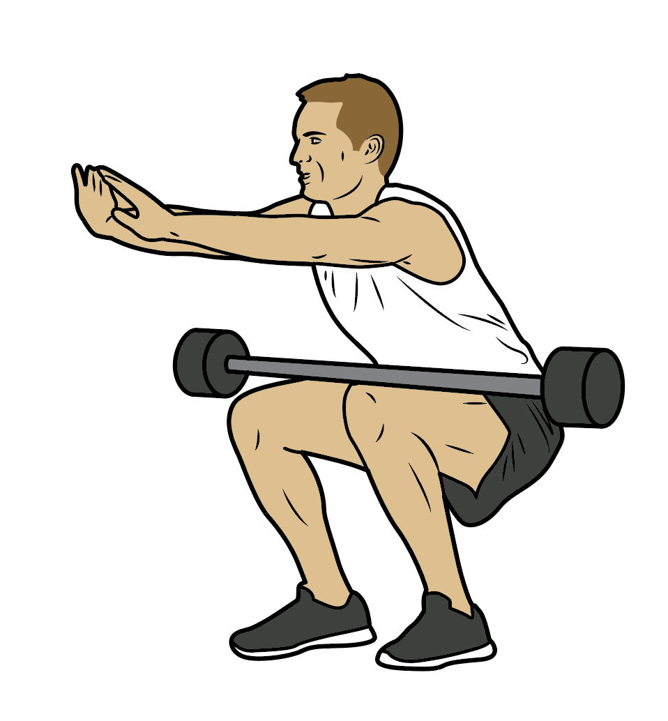 Drop down into a deep squat position with your calves touching your hamstrings. Have a training partner rest a light barbell across the tops of your thighs and stay in the position for 30-60 seconds.