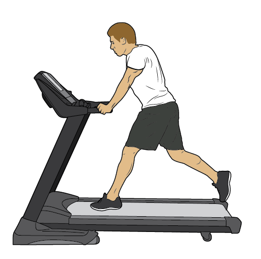 B) Drive the legs back in a running movement to accelerate the belt using your own force. Build up as much speed as possible and once you’ve hit your target, jump off with your feet to the side to allow the belt to slow down.