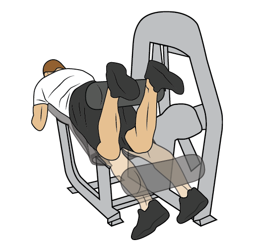 A) Lie on the hamstring machine with your ankles under the pads and your torso pressed flat on the platform.