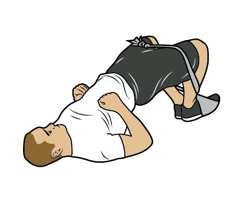 A) Lie supine on the ground with your knees bent. Place a resistance band just above your knees.