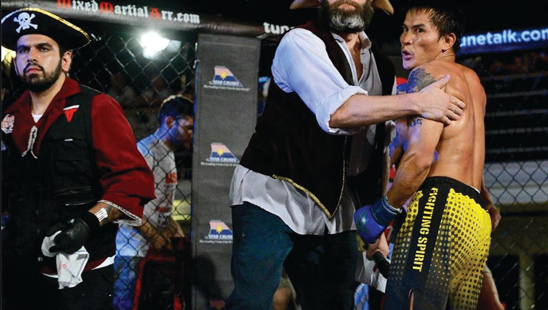 Avast, me hearties, and batten down the hatches on the good ship Libra for some swashbuckling MMA action. For possibly the first time, a cage was taken onto the high seas on a 710ft cruise liner for Mixed Martial A’rr, a 10-fight showdown between the salty sea dogs of #teampirates and the landlubbers of #teammma.