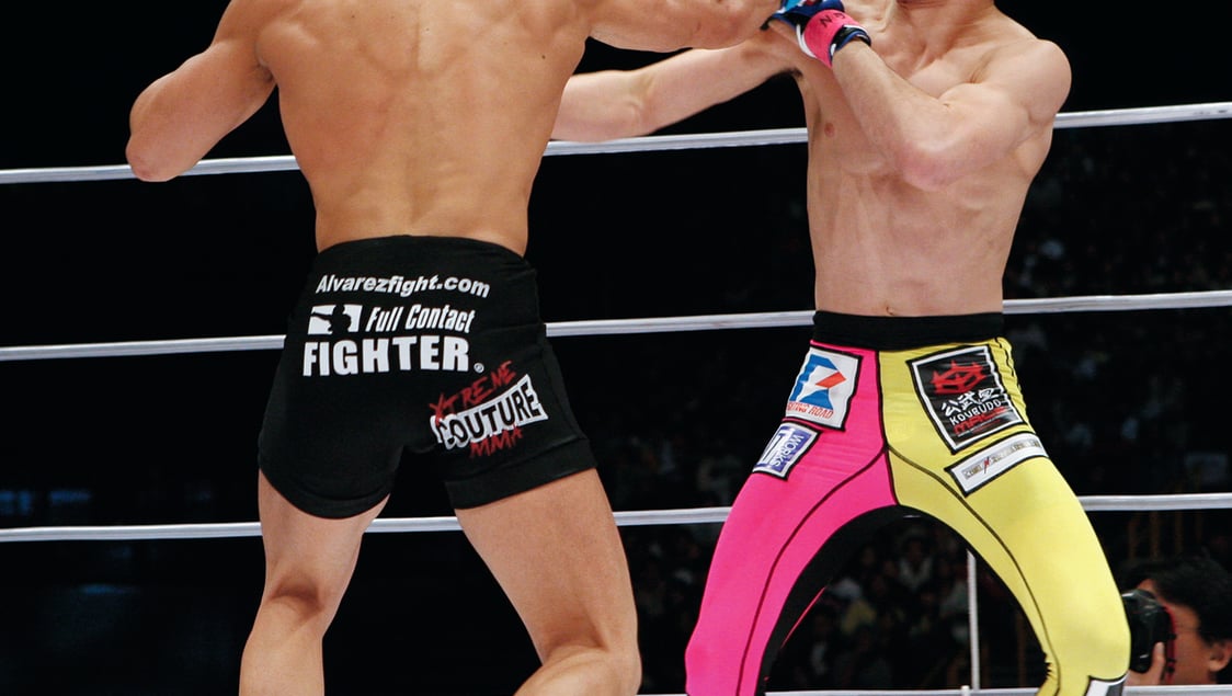 We’ve seen fighters wear everything from kimonos to pink leotards, but Shinya Aoki trumps them all with his consistently hideous tights. Aoki is one of the best grapplers on the planet though, so we figured we’d see what all the fuss is about. After a test run in the gym, we discovered the tights can improve your grappling skills by at least 30% [statistics are for comedy value only]. The only downside is you’ll have to put up with the jibes from your training partners. Tough choice.