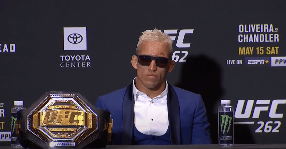 Just seconds into round two, Oliveira clipped Chandler with a clean left hook. “Do Bronx” then hunted Chandler down as he was retreating backwards towards the cage. Another left from Oliveira sent Chandler down to the canvas and then the former drove a series of punches to force the stoppage.