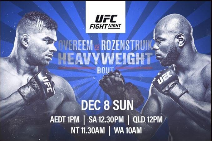 Saturday 7 December – UFC on ESPN 7: Alistair Overeem vs. Jairzinho Rozenstruik