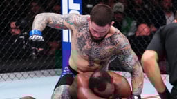 5 - Kenny capitalizes by pushing the right elbow across Pedro’s body and shooting for a double-leg takedown.