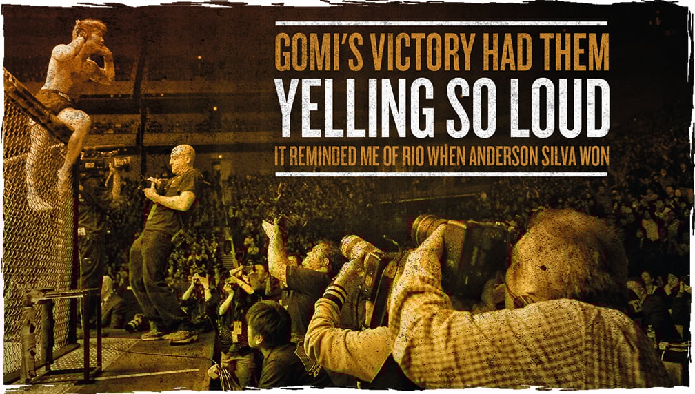 Then Gomi’s victory had them yelling so loud it reminded me of Rio when Anderson Silva won. And they went into a frenzy when ‘Rampage’ Jackson came out to the Pride music. Who said that the Japanese fans were reserved?