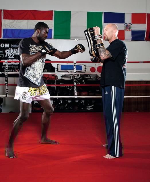 3. Chidi then attempts to body kick, but Nick is able to catch it, thus controlling any further strikes that Chidi would be able to throw.