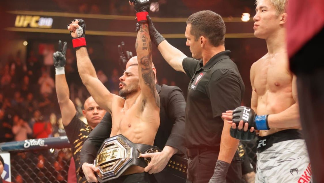 Despite Asakura having some success, Pantoja stayed a step ahead and in the second round, he produced a remarkable back take to get the rear-naked choke finish.