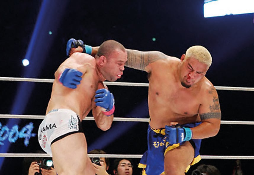 K-1 WGP champions were lionized in Japan, but Hunt stood apart. He’d won by virtue of having a head like a concrete block, fists like lead weights, and an unbridled passion for punching people’s heads in. Big belly, big heart, no quit. A man of the people. Similarly popular was the Brazilian buzzsaw Wanderlei Silva. Silva was the ultimate anti-hero, laying waste to fan favorite after fan favorite in increasingly sadistic ways, hence the ‘The Axe Murderer’ nickname. Each bout was like a Freddy or Jason movie. Enter – on just two days’ notice – Hunt and MMA had its most intriguing bout of the year. A 300lb bar-room brawler so good that he’d won the grandest prize in striking sports. A 200lb MMA champion who’d redefined organized violence.