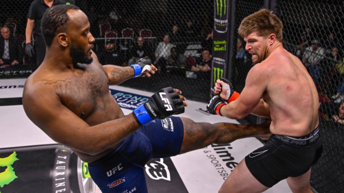 The fights were worth the wait. Cleveland was dangerous from the beginning as he punished Bartling with a fury of punches that ended in a knockout in the first round. Cleveland took his record to 6-1. In the co-main event, David Wright returned to the LFA in convincing fashion with a submission win over John Moore. Just before the tornado warning, Jake Woodley had a unanimous decision win in front of his home crowd.